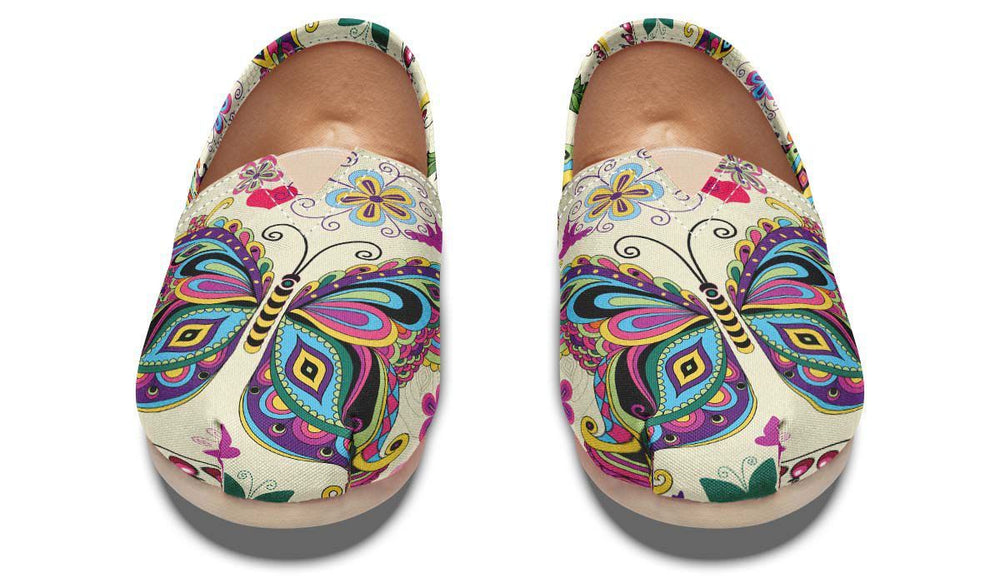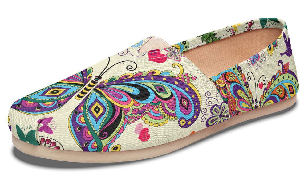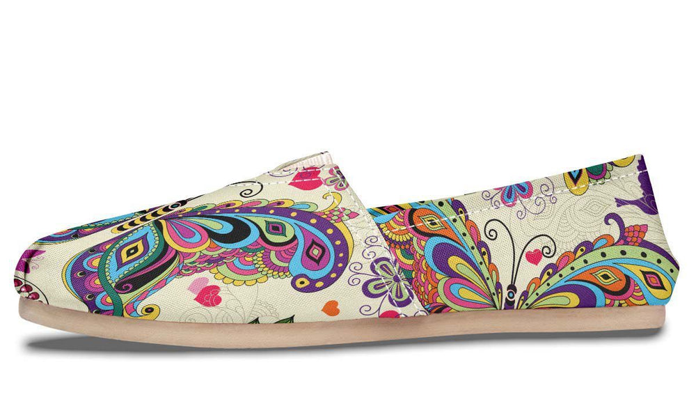 Embrace transformation with THE BUTTERFLIES Tomu Canvas Shoes from vegahm. These shoes are designed for individuals who cherish meditation, good vibes, and spiritual peace. Featuring delicate butterfly motifs, chakra symbols, and intricate mandala patterns, they embody a sense of growth, renewal, and mindfulness.